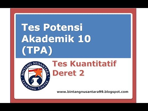 Merasa penasaran dengan Tes Potensi Akademik 10 (TPA) Tes Kuantitatif Deret 2, lalu berusaha mencarinya di internet dan tanpa sengaja menemukan situs ini?. Berikut ini kami sudah menyiapkan penjelasan tentang Tes Potensi Akademik 10 (TPA) Tes Kuantitatif Deret 2 dalam bentuk video, yang mungkin bisa menjawab rasa penasaran Anda tentang tips seputar soal TPA (Tes Potensi Akademik) dan Tes Psikologi lain yang sedang Anda cari. Jika Anda mengakses situs ini menggunakan smartphone (HP), silahkan gunakan mode layar penuh (auto rotate diaktifkan).6. Skor Tes Potensi Akademik (TPA)